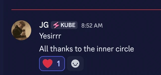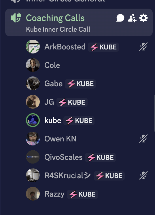 The Inner Circle is a private Discord community where entrepreneurs and agency owners get hands-on guidance, live weekly calls, one-on-one support, and access to 15+ exclusive resources. It’s a tight-knit group of driven people at all stages — from beginners to those earning $60K+ — working together to build real online income.