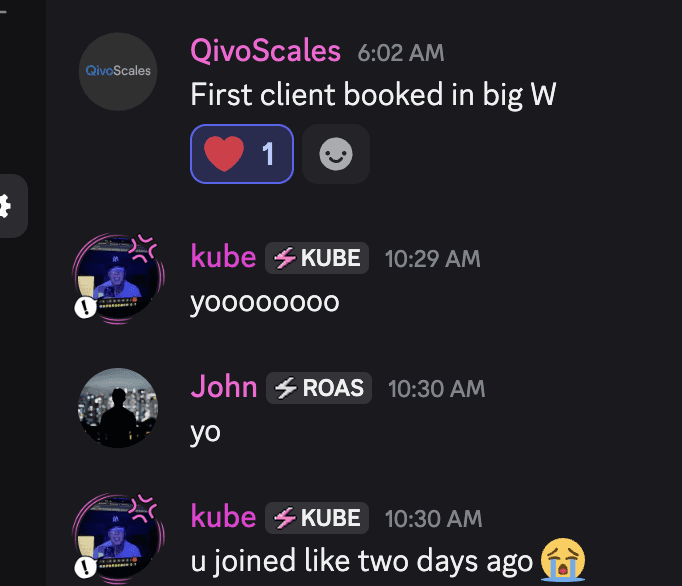 When you join the Inner Circle, you get full access to our private Discord community, 15+ resource channels, one-on-one support tickets, and four live coaching calls every week. You’ll learn from real agency owners, get feedback on your outreach, ads, and sales calls, and network with 30+ members who are all building their own businesses. It’s everything you need — training, mentorship, and community — all in one place.